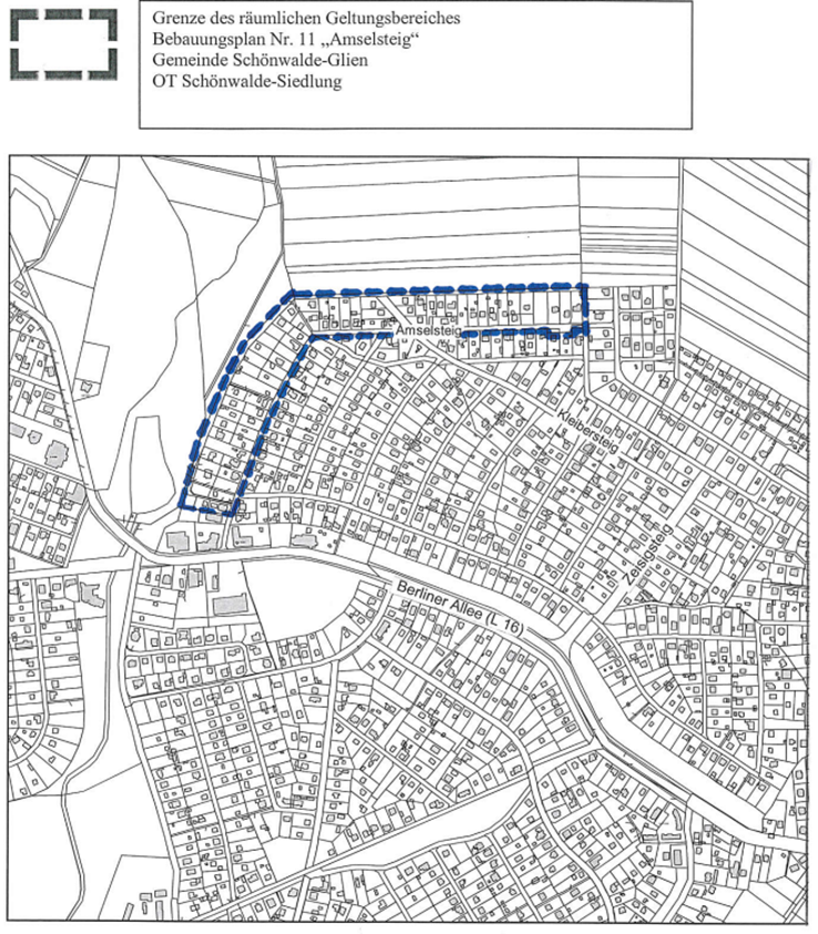 Der von der Gemeindevertretung der Gemeinde Schönwalde-Glien in der Sitzung am 18.09.2025 unter der Drucksache Nr. 072/2025 als Satzung beschlossene Bebauungsplan Nr. 11 „Amselsteig“, 5. Änderung, für das Gebiet in der Ortslage Schönwalde-Siedlung, bestehend aus der Planzeichnung und dem Text wird gemäß § 10 Abs. 3 Baugesetzbuch (BauGB) in der zur Zeit gültigen Fassung hiermit bekannt gemacht.