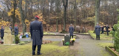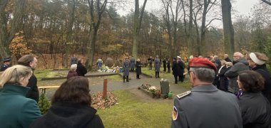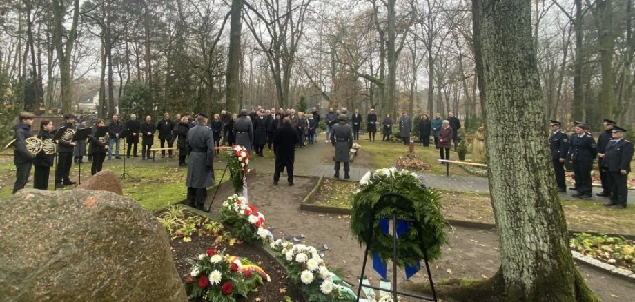 Auf dem Friedhof Schönwalde-Siedlung versammelten sich Vertreterinnen und Vertreter des Landkreises Havelland, Angehörige der Bundeswehr und der 7. Kompanie des Sanitätsregiments 1 Berlin, Einsatzkräfte der Freiwilligen Feuerwehr sowie Bürger und Bürgerinnen aus der Gemeinde, um gemeinsam der Toten zu gedenken.