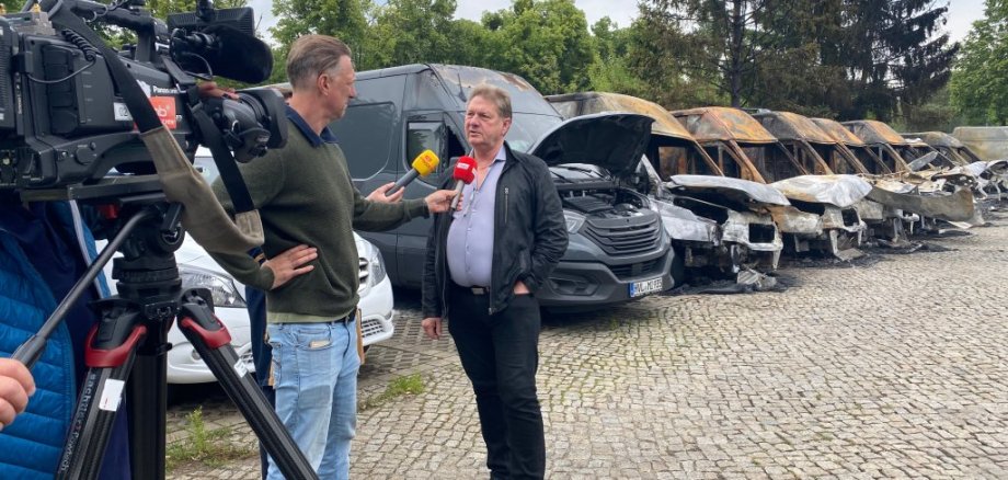 Nach Angaben der Feuerwehr waren die Fahrzeuge teils auf der Straße, teils auf einem umzäunten Firmengelände abgestellt. Auch ein Anhänger sowie ein mobiles Baustellen-WC wurden durch das Feuer zerstört.