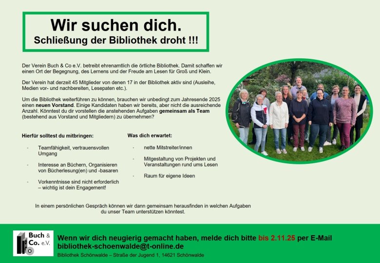 Wenn wir dich neugierig gemacht haben, melde dich bitte bis 2.11.25 per E-Mail bibliothek-schoenwalde@t-online.de.