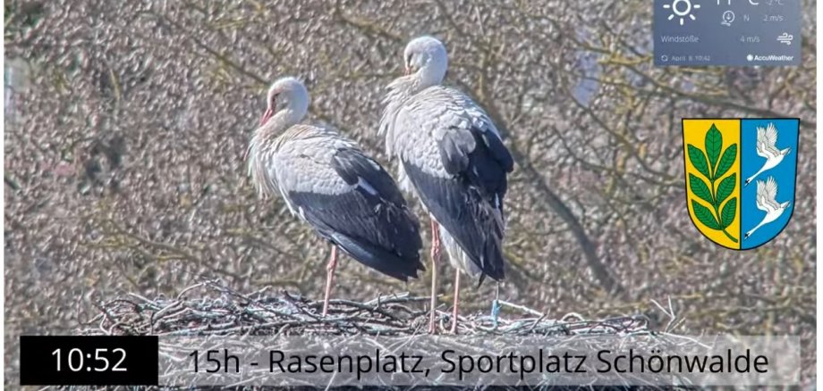 Interessierte können das Livegeschehen vor Ort über einen QR-Code abrufen oder online unter www.schoenwalde-glien.de/de/unsere-gemeinde/livecam-storchennest-pausin/ verfolgen.